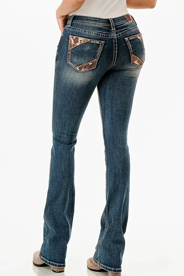Cow Hide Trim Mid Rise Bootcut Jeans